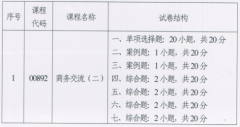 关于调整自考课程商务交流(二) ( 00892 )全国统考试卷结构的函 根据教育部考试中心 《关于更换高等教育自学考试商务交流(二)课程考试大纲和教材的通知》(教试中心函[2018]252号)的精神,......
